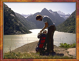Rast auf dem Weg zur Finsteraarhornhütte (Berner Oberland, Schweiz) 1989. |