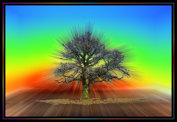 "Baum" Originalfoto Farbdiapositiv, hier über eine leichte Tontrennung verfremdet und gezoomt.