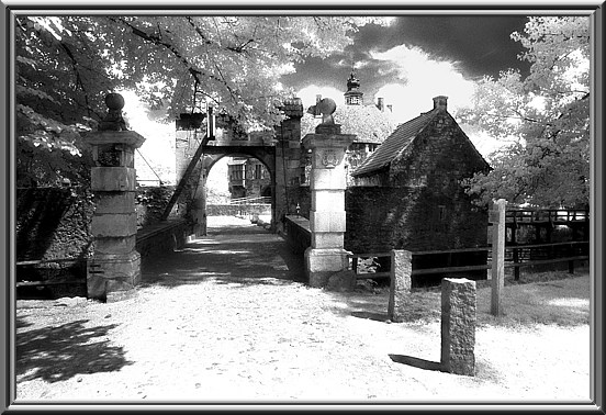 Der Eingang der Burg Vischering bei Lüdinghausen (NRW) im Infrarotlicht auf Kodak Hie und Infrarotfilter (695nm)