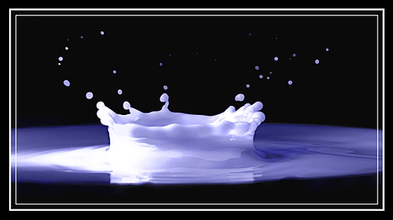 Milchtropfenkrater, geblitzt bei 1/16000 sek (coloriert).